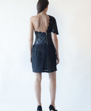 Back Open Asymetrical One Shoulder Guipure Detail Dress
