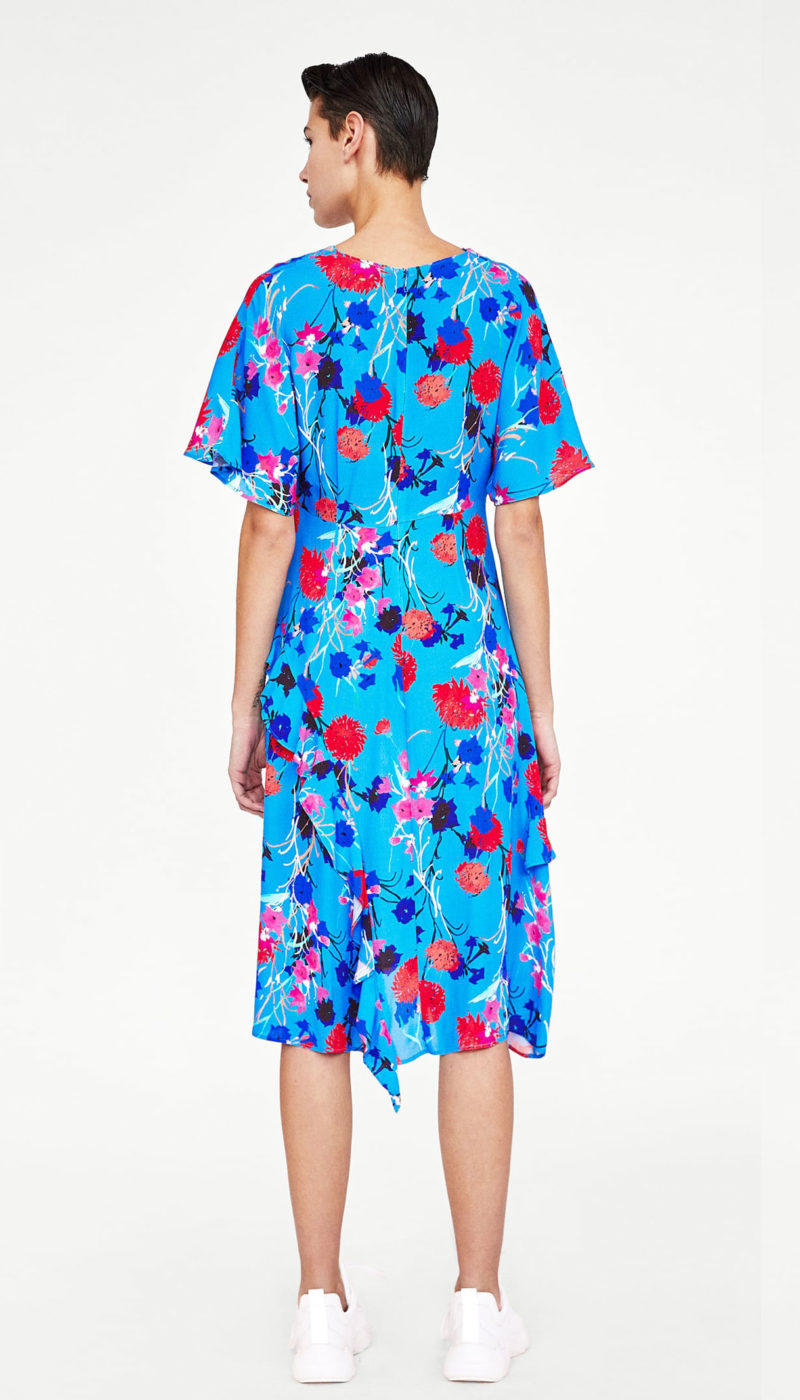 Adiree Curated : Electric Blue Patterned Ruffle Midi Dress Made In Morocco