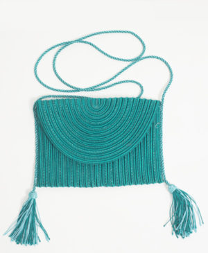 Envelope Geometric Vintage Turquoise Cotton and Wool Clutch Bag with Tassels
