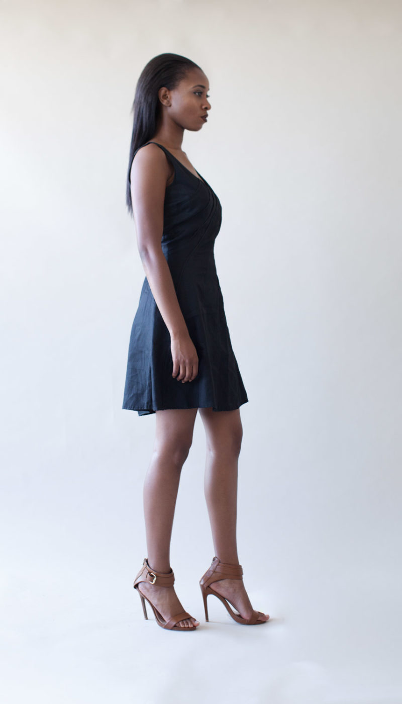 Sleeveless A Line Dress With Diagonal Line Detail