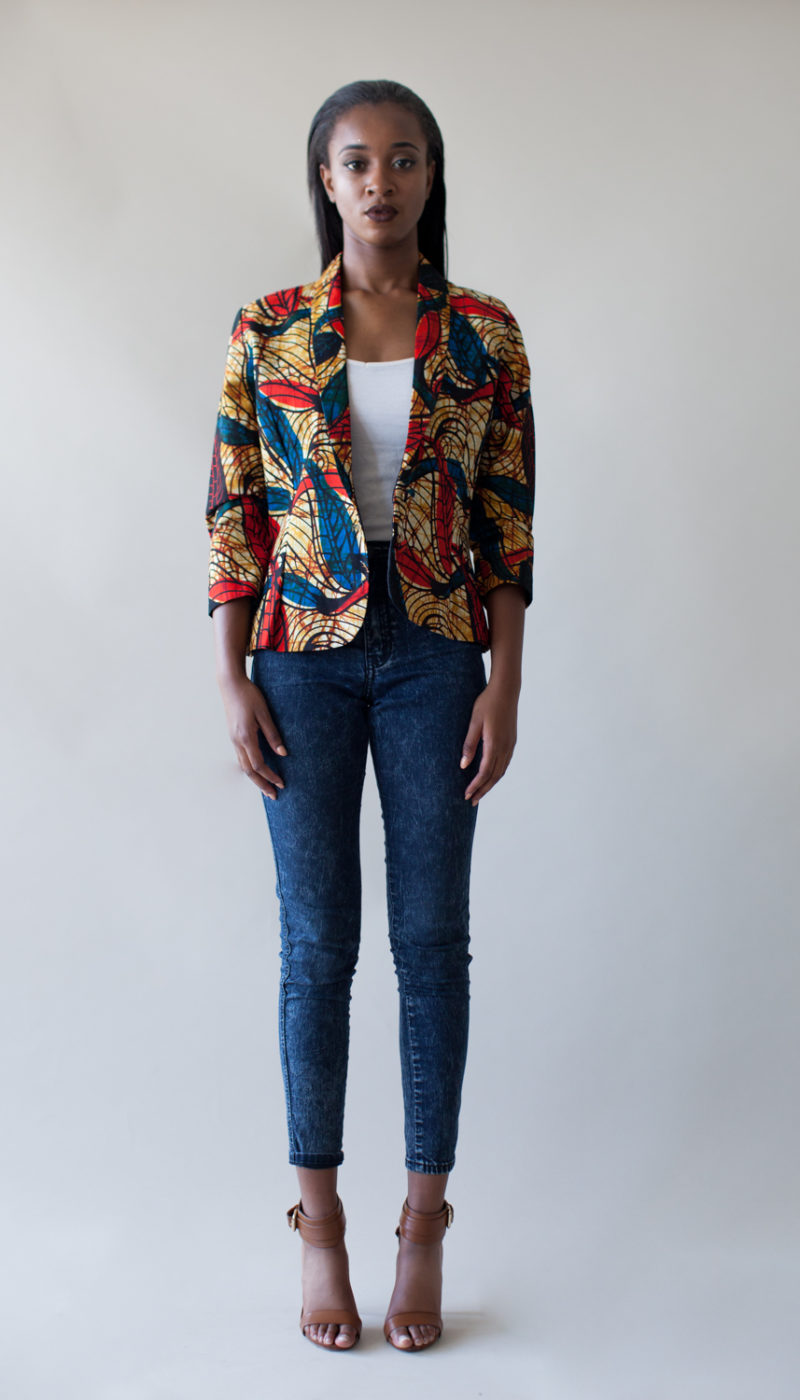 Slim Fit Blazer In Red Yellow and Blue Printed Fabric by Shangani Fashions