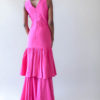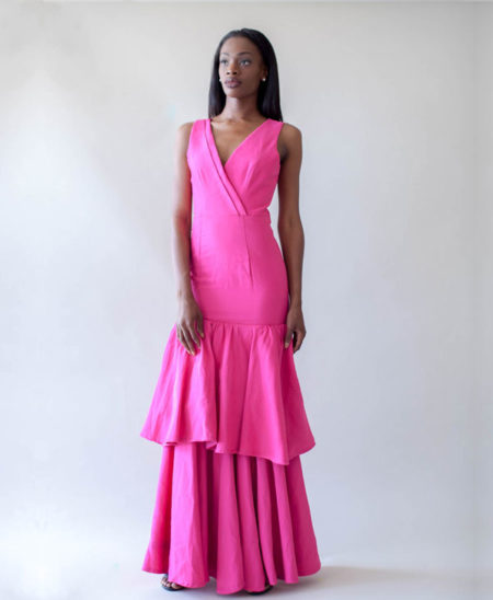 Add bohemian vibes to an evening gown and this is what get. This dress features soft-touch woven material, with a modern romantic sillhoute, and layered ruffles. It is a free-flowing maxi dress with effortless designs made for the modern traveller. Questions about fit? Email shop@Adiree.com
