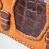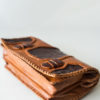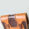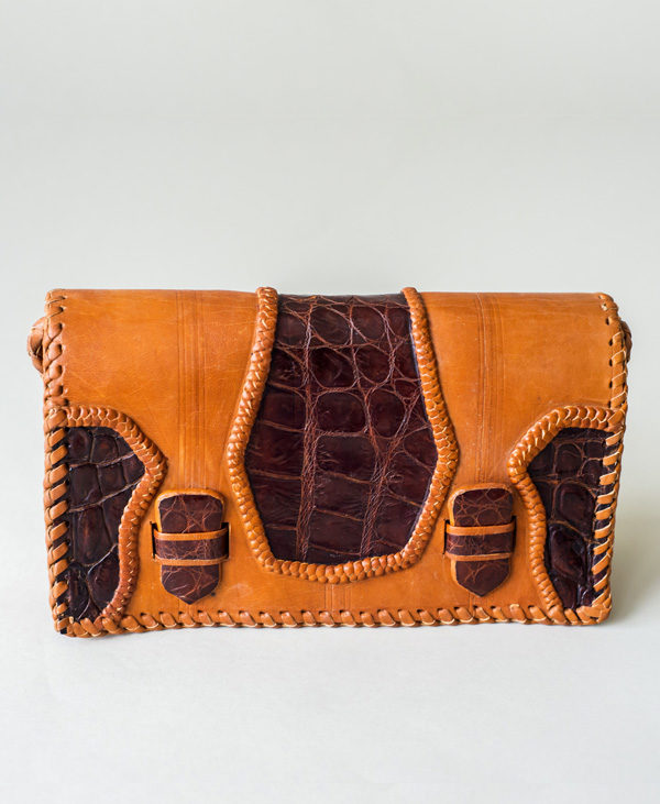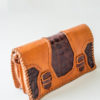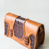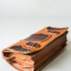 A beautifully handmade, dyed and embossed leather clutch handbag with two interior compartments. It can be worn either as a crossbody shoulder bag or as a statement clutch.
