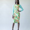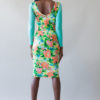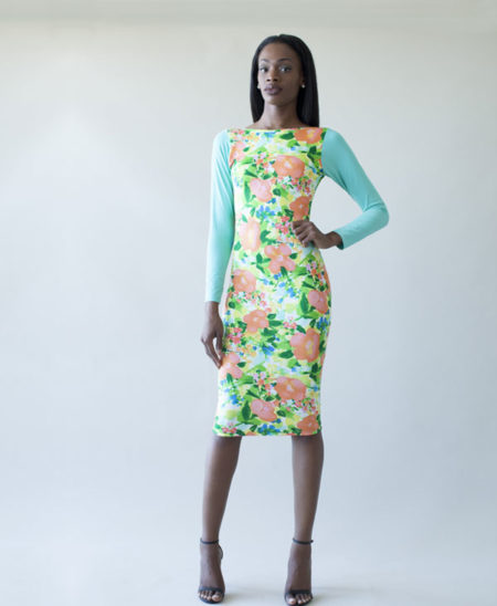 Floral arrangements are beautiful. On curves? Even better. This dress features a soft teal color on the long sleeves, floral print on the body of the dress, crew-neck, and “midi” in length.
