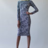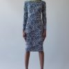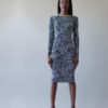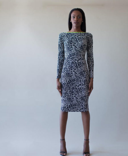 The embodiment of hippie luxe has just arrived. Turn heads in this long sleeve, crew-neck (lined in highlighter yellow) monogram body con dress.