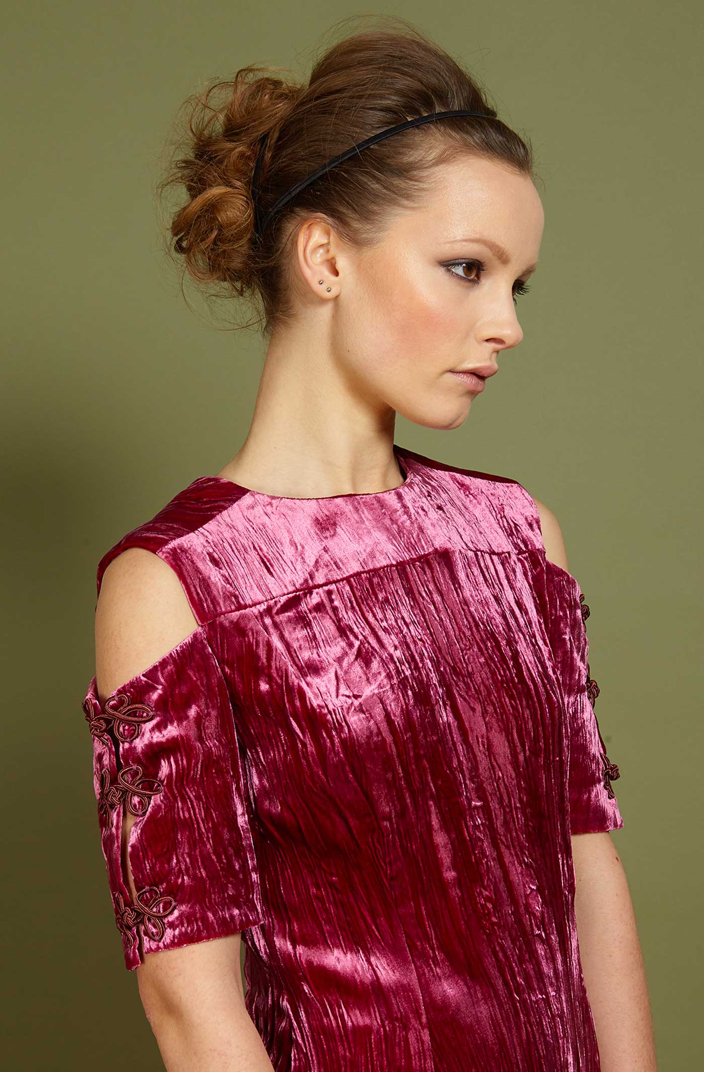 – 18% silk, 82% viscose; lining: 100% silk; fasteners: 100% rayon – Dry clean